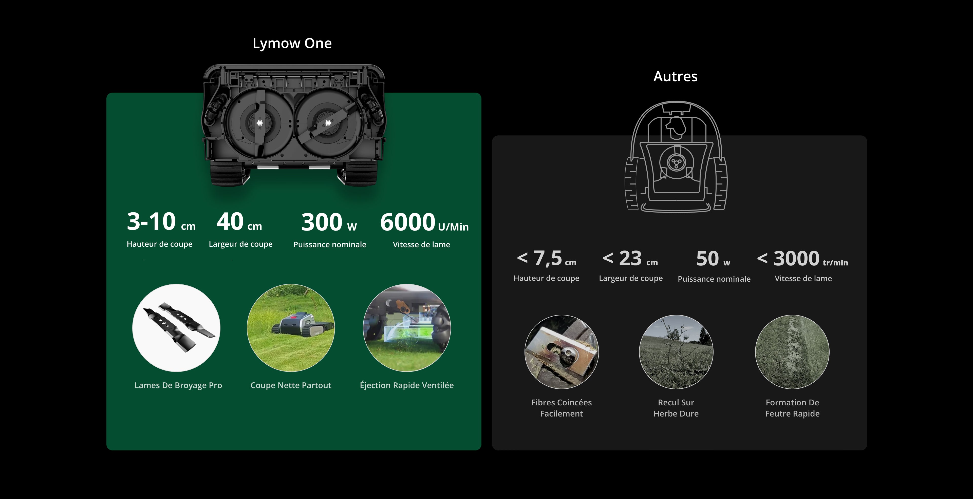 Avec sa protection IPX6, son capteur de pluie, son châssis robuste, son moteur puissant et sa batterie LiFePO₄ durable, le Lymow One résiste à toutes les conditions et assure des performances fiables avec peu d’entretien.