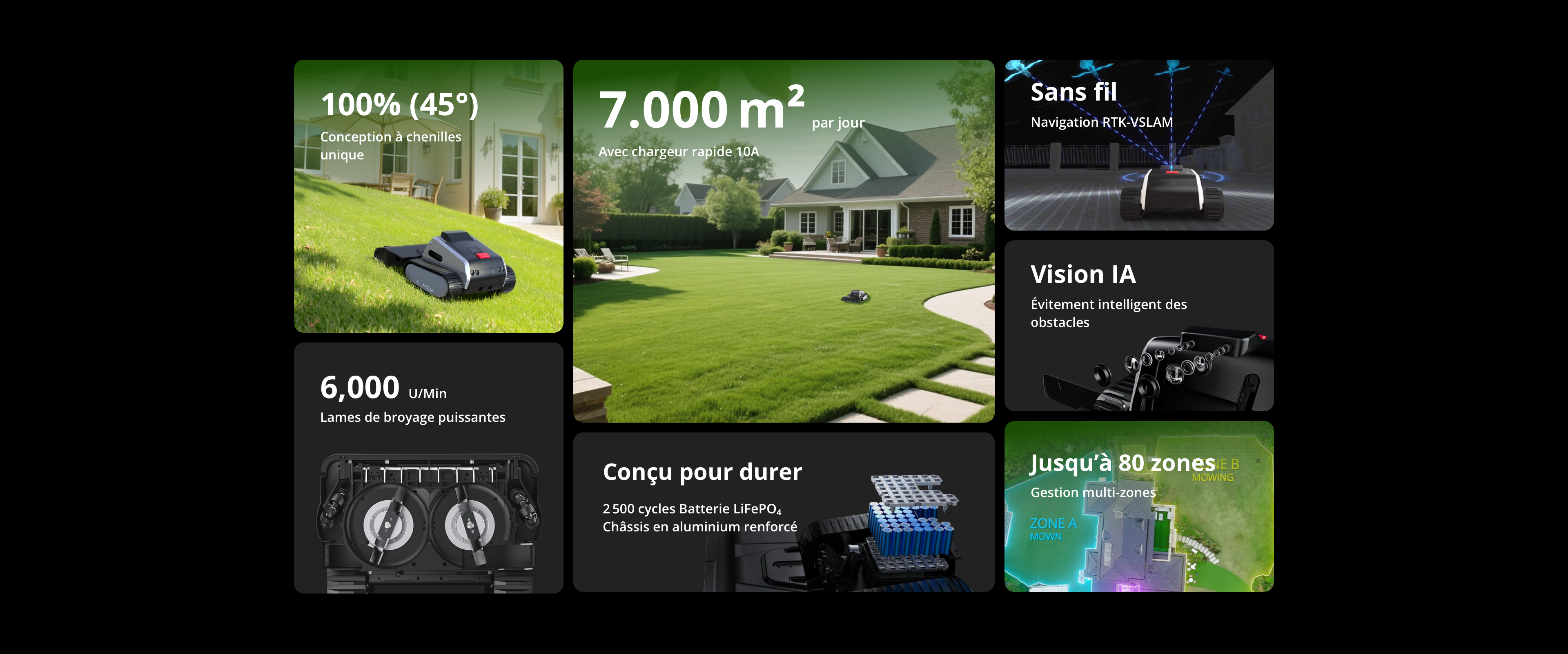 - Jusqu'à 7000 m² de surface de tonte en 12 heures.